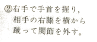 (2) Frappe du genou droit et sur le côté pour disloquer l'articulation pendant que vous tenez le poignet avec la main droite.