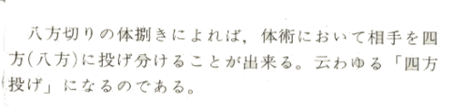 L'adaptation de Happo-giri en Taijutsu vous permet de projeter votre partenaire dans les 4 directions. Cette technique de projection est appelée : "Shiho-nage"