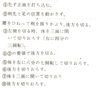 Ce qui suit sont les séquences de Happo-giri avec les séquences clés :