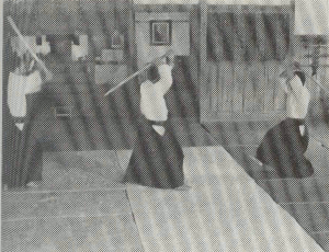Laissez votre Ki se mélanger avec celui de votre adversaire. Comme il commence sa coupe, saisir le manche de l'épée et verrouiller son coude gauche sur votre bras droit.