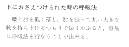Plongez vos hanches et coudes vers le bas, faites pivoter vos bras vers le haut avec vos coudes étendus vers l'extérieur comme si vous étiez en train de relever un gros objet sphérique. De cette façon le Kokyu-Ho est assez facilement exécuté.