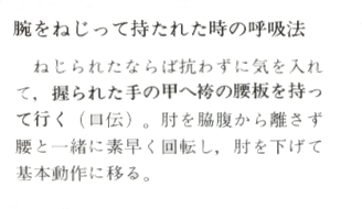 "Ne résistez pas à la torsion. Au lieu de cela, chargez votre corps avec votre énergie et déplacer le panneau arrière de votre Hakama vers l'arrière de votre main saisie." Kunden