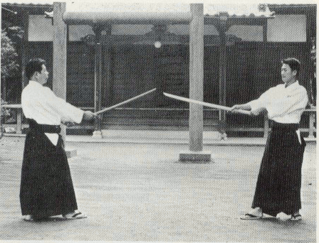 Au moment où votre adversaire lève son Ken, mêlez le Ki dans le mouvement et saisissez la poignée du sabre avec votre main gauche. |