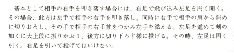 Dans la technique de base, comme l'adversaire frappe avec sa main droite, votre pied glisse à droite vers le côté droit, et votre pied gauche effectue un grand pas en glissant vers l'arrière. Dans le même temps, votre main gauche descend sur sa main droite, et votre main droite effectue une coupe selon un angle suivant son épaule et saisir son poignet. Comme vous tournez vos hanches, la main gauche saisie votre adversaire et vous avancez votre jambe gauche en avant. La main levée, comme si vous armiez votre sabre, le corps est tourné, et la coupe est effectuée vers le bas, comme avec un sabre. La jambe gauche est placée aux côtés de son corps. Ne faites pas la coupe en retirant le pied droit.