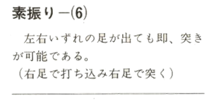 Une coupe faite à droite, par exemple, est suivie d'une pique en avançant le pied droit, accompagnant ainsi le coup.