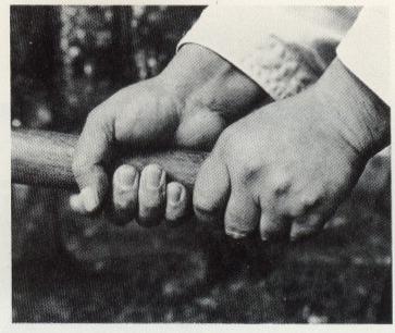 Il faut étudier attentivement les images ci-dessus pour s'assurer d'une bonne méthode de frappe. Lorsque vous pratiquez cet exercice, modifiez la position de vos mains sur le ken de telle façon que vos deux mains soient très proches l'une de l'autre. Le Bokken utilisé pour ce genre d'exercice est plus rond et épais.