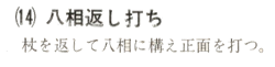 Tournez le Jö, prenez la position Hasso no Kamae et ensuite frappez la face de votre adversaire.