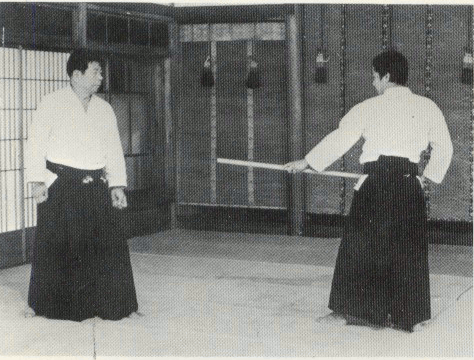 Faites un pas autour avec le pied droit pour déplacer le corps en dehors de la direction de l'attaque de votre adversaire et saisissez son Jo. |