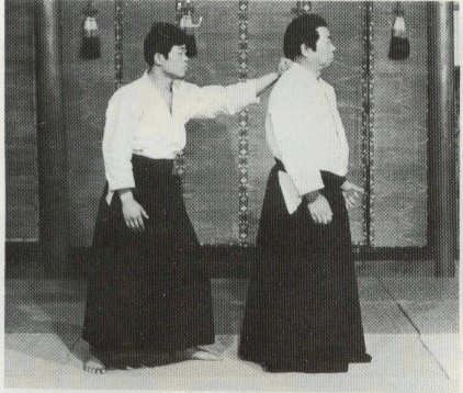 Omote-Waza : Couvrez votre tête avec vos deux mains pendant que vous glissez sur le côté de votre partenaire avec votre pied gauche. Abaissez votre tête, plongez et pivotez vos anches et vous liberez ainsi votre épaule de la saisie. Vous poursuivez ensuite avec Dai-Ikkyo Omote-wasa.