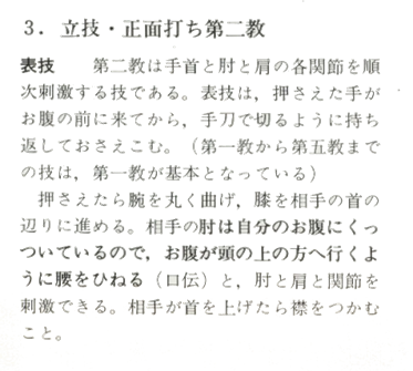 Omote Wasa (Technique de face) : Dai-Nikyo est une technique destinée à faire une impulsion sur les articulations du poignet de votre adversaire, le coude et l'épaule. Lorsque vous effectué la technique en Omote-Wasa, Amenez la main que vous avez capturé devant la partie basse de votre abdomen tout en tournant le poignet vers l'intérieur comme si vous coupiez vers le bas avec les Teganata et bloquez votre partenaire en bas. (Toutes les techniques de Ikkyo à Gokyo sont basée sur Dai-Ikkyo).)