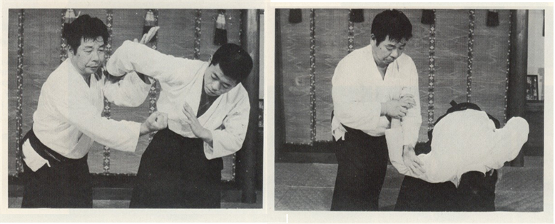 Si votre épaule est saisie, contrôlez immédiatement le coude de votre partenaire avec votre Tegatana et bloquez le au sol en effectuant un mouvement en spirale de vos épaules. Il s'agit d'une technique avancée mais elle constitue les formes de base de Kata-dori.