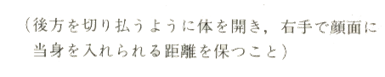 Tournez votre corps comme si vous glissiez vers l'arrière en effectuant un mouvement de coupe et maintenez une distance avec votre partenaire vous permettant de lui faire un Atemi sur son visage avec votre main droite.