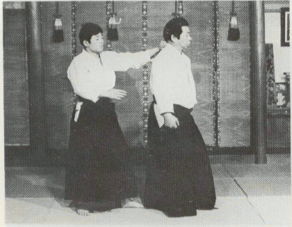 Faites un pas sur le côté de votre partenaire, placez une main sur son menton pendant que vous feignez une frappe sur son coté et poussez votre main de bas en haut.