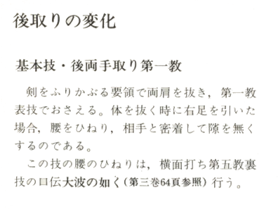 Les hanches devraient être tournés "comme le mouvement des vagues" (Kuden) qui se retrouve dans Yokomen-uchi-Dai Gokyo Ura-waza.