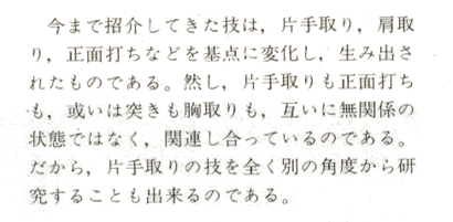 Par conséquent, il est possible d'étudier les techniques Katate-dori de façon totalement différente de celles présentées ici.