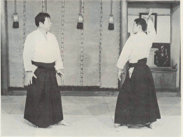 Après avoir coupé la main de votre partenaire vers le bas, poursuivez avec la forme Katate-dori variation (6).