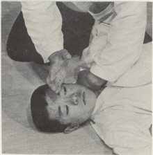 After bringing him to the mat with your hand on his collar, apply pressure to his carotid artery with that hand.