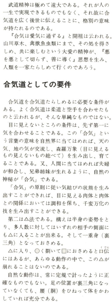 L'esprit du Budo (Art martial) est très élevé et a une grande portée. En mesurer toute l'amplitude dans une seule vie humaine n'est pas possible. Aussi est-il primordial de diffuser l'Aikido à des cercles de personnes les plus larges possibles.