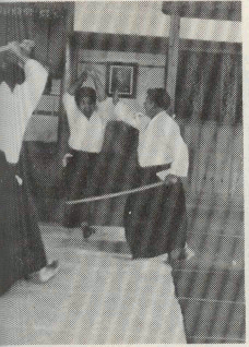 Laissez votre Ki se mélanger avec celui de votre adversaire. Comme il commence sa coupe, saisir le manche de l'épée et verrouiller son coude gauche sur votre bras droit.