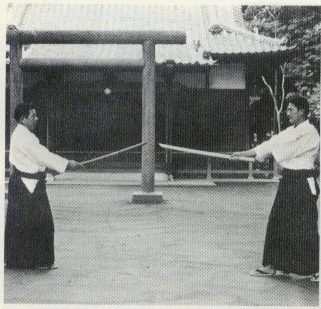 Faites un pas en arrière avec le pied gauche, défendez comme si vous coupiez de haut en bas, et adoptez l'attitude en Tsuki |