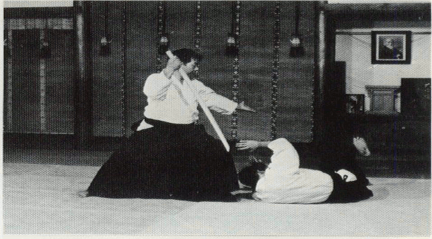 Agrippez le manche du Ken avec votre main droite. Placez votre pied droit derrière celui de votre adversaire et placez vos anches juste à côté de son corps. |