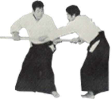 Faites un pas autour avec le pied droit pour déplacer le corps en dehors de la direction de l'attaque de votre adversaire et saisissez son Jo. |