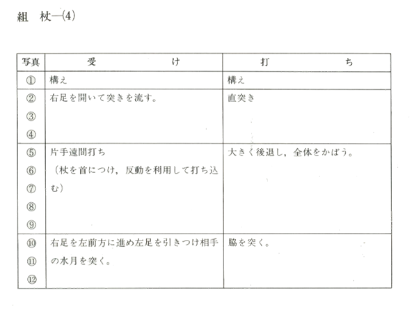 Katate toma uchi. (Placez le Jo derrière le cou, faites un pas en avant. Durant l’enjambée, frapper votre adversaire.) |