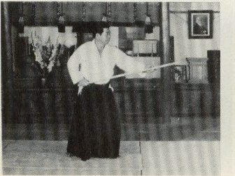 Tirer le Jo en arrière. Faites un large pas en avant avec votre pied droit et faites un balayage du haut vers le bas pour finir au dessus de votre tête.