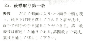 Omote-Waza : Couvrez votre tête avec vos deux mains pendant que vous glissez sur le côté de votre partenaire avec votre pied gauche. Abaissez votre tête, plongez et pivotez vos anches et vous liberez ainsi votre épaule de la saisie. Vous poursuivez ensuite avec Dai-Ikkyo Omote-wasa.