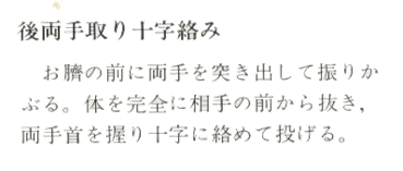 Projetez vos deux mains vers l'avant de votre nombril et relevez les. Dégagez complètement votre corps de l'avant de votre partenaire, agrippez ses poignets et croisez ses bras pour le projeter.