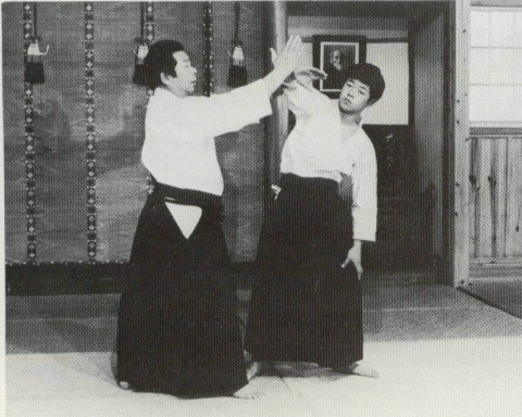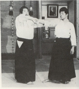 Omote Wasa (Technique de face) : Dai-Nikyo est une technique destinée à faire une impulsion sur les articulations du poignet de votre adversaire, le coude et l'épaule. Lorsque vous effectué la technique en Omote-Wasa, Amenez la main que vous avez capturé devant la partie basse de votre abdomen tout en tournant le poignet vers l'intérieur comme si vous coupiez vers le bas avec les Teganata et bloquez votre partenaire en bas. (Toutes les techniques de Ikkyo à Gokyo sont basée sur Dai-Ikkyo).)
