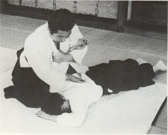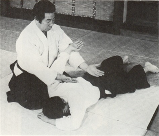 Une fois que vous avez bloqué votre partenaire au sol, pliez son bras de façon circulaire et mettez votre genoux dans son cou. "En collant son coude sur votre abdomen, tournez vos hanches vers la tête de l'adversaire"" (Kuden) En faisant ainsi vous agissez sur les articulations du coude et de l'épaule de votre adversaire. Si il essaye de relever sa tête, saisissez son col et contrez le.