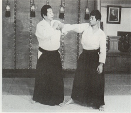 Tournez vos anches en même temps que vous pliez le bras de votre partenaire en suivant une forme de < et en essayant de faire avancer son petit doigt en tournant vers lui. Votre main gauche agrippant son coude, faites un angle de son bras par le dessous. S'il essaie de tendre son bras, parez la tentative avec la technique Tegatana Dans les deux cas, l'exercice est conclu avec un mouvement de torsion de la hanche.
