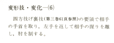 Saisissez le poignet de votre partenaire à la manière de Ura-waza Shiho-nage, désengagez-vous en tournant votre main gauche et en contrôlant son coude.