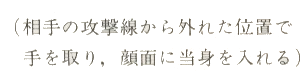 Tenez la main de votre partenaire à un endroit où vous êtes bien en dehors de sa ligne d'attaque et faites un Atemi sur son visage.