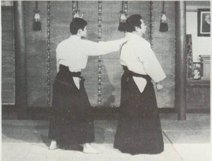 Faites un pas sur le côté de votre partenaire, placez une main sur son menton pendant que vous feignez une frappe sur son coté et poussez votre main de bas en haut.