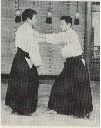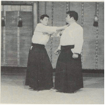 Lorsque votre partenaire essaye de vous saisir par les épaules, déséquilibrez-le sur le côté (en effectuant un Atemi sur le visage), glissez votre tête entre ses bras et en passant par le côté puis placez votre corps en biais puis faite un Atemi sur son coup-de-pied.